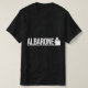A bold and stylish T‑shirt featuring the ALBARONE logo paired with a sharp gangster‑inspired silhouette. Designed with a clean black vector graphic, this shirt blends vintage mafia aesthetics with modern streetwear attitude. Printed on a classic white tee, it delivers a strong visual impact while keeping the design minimal, iconic, and wearable for any occasion. Perfect for fans of retro noir style, gangster culture, or unique statement apparel.