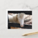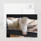 Blåögd vit ponny tittar genom stängslet för att få ett fotografiskt vykort