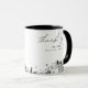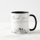 Modern Albuquerque skyline kaffekopp tackgåva med "tack"-skript. Designen visar en fantastisk skiss med möjlighet att anpassa era namn och exakt plats. Gå in i Zazzles designverktyg för ytterligare anpassningar.