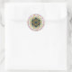 Söt juldesign med nedfläckad glasgrafik! Utformningen har ett cirkelglas, ett nedfläckad i kyrkans fönsterbild. Omkring nedfläckaden är glaset en julkrans som är komplett med holly. I en cirkel runt utsidan av kyrkans nedfläckad- glas och krans är Luke 2:11-versen från den engelska standardversionen av heligan bibeln i en söt djup kranbär färg. Bakgrunden till konstruktionen är ett lätt grått färg. Det här söt klistermärket gör att du får en glatt beröring i dina julklapp och presenter!