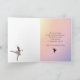 En ballerina läcker gärna. En ballerina i en vit klänning lämnar spår av stjärndamm när hon läcker. Hennes arm är utdragen och hennes tår är pekade. Bakgrunden är blå moln som snurrar.