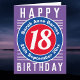 18:e födelsedagskort. Ljusa färger och djärv design. Numrerat födelsedagskort. 18 år gammal.