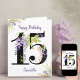 Personlig 15: e födelsedagskortet med åldersnummer 15. Denna blommigt har fet nummer 15, dekorerad med wisterblommor och löv i nyans av lila, lilak, rosa och grönt. Mallen är konfigurerad så att du kan anpassa namn på framsidan och meddelandet inuti.