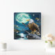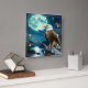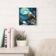 En örn vilar på sten, som lyfts upp av fullt, och bortser från en serenflod som omges av träd och berg på natten.