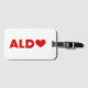 Namn Aldo med brev ersattes med ett rött kärlek-hjärta. En perfekt gåva till en vän eller familjemedlem med stort hjärta eller kanske du är fläkt i någon med namn. En idrottsman eller konstnär. Bära det vid ett evenemang för att visa att du kärlekar dem. Färg kan ändras.