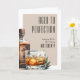 Ett vikt födelsedagskort med en djärv whisky-inspirerad design. Framsidan visar en akvarell-flaska och ett whiskyglas till höger, tillsammans med frasen ”Aged To Perfection” högst upp i klassisk serif-typografi. Under det finns utrymme för ”Happy [Ålder] Birthday [Namn]” så att du kan anpassa det för alla milstolpar eller år.