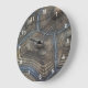 Mönstren av ett åldras sköldpaddsskal med skuggor av grått och brunt inspirerade den här väggklockan. Den är jordisk, edgy och sofistikerad. Tortoismen symboliserar livslängden. Den här bilden är ett ursprungligt texturfoto av JLW_PHOTOGRAPHY.