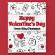 Enkel valentinskort för äldre barn i klassrummet. Cupid, hjärtan och rosor linjeteckning i svart och vitt rött och grått. Anpassa enkelt med ditt barns namn.