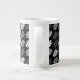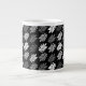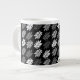 Silhuett av äldre trädblad i ett yt-mönster med grå och vit detalj på svart bakgrund.