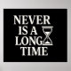 En djärv påminnelse som absolut sällan håller för evigt. Den här minimalistiska utformningen innehåller frasen "Aldrig is long time" parad med en slimmad timglasikon - som symboliserar den tysta tidens gång och den flytande övertygelsen. Perfekt för tänkare, drömmare och alla som vet att förändring är oundvikligt. Tryckt i skarpt vitt på svart för att få tidlös påverkan.