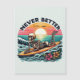 Ett djärvt och lekfullt hälsningskort med ett skelett på en surfbräda i en krasch havsvåg som ställs mot en vibrerande solnedgång med frasen "Aldrig bättre". Denna ironiska och skonsamma konst blandar ihop surfa med mörk humor - perfekt för stranden älskare, alternativa stil fläkt, och människor som tar till sig liv med ett rebelliskt, lättskrämt kant.