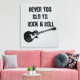Rock musik är tidlöst vare sig du är ung eller gammal. Denna högkvalitativa poster har en klassisk gitarr med utsliten text. Budskapet är enkelt. Låt aldrig er ålder hålla er tillbaka från kärlek i rock musik.