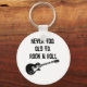 Rock musik är tidlöst vare sig du är ung eller gammal. Den här nyckelringen har en klassisk gitarr med utsliten text. Budskapet är enkelt. Låt aldrig er ålder hålla er tillbaka från kärlek i rock musik.