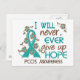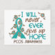 Blunda en väg av PCOS-medvetandet och dela hoppets inspirationskänsla med Jag kommer aldrig någonsin att Ge Hoppets t-shirts, kläder, knappar och varor med kontrasterande text typsnitt och en slående teal PCOS-stöttband som är fastspända med tjusiga teal- och chokladblommor.