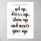 Aldrig att Ge Up Motivational Quote Poster - att presentera denna inspirerande motivationsskapande poster med en bakgrund av mjuk stenfärgsfärg i elegantens skuggor av rosa och beige. Budskapet: "Oavsett hur du uppträder, klär dig, dyker upp och aldrig ge upp." Vakna, inspireras, ta tillfället i akt med den här sensationella poster. Behålla som leker med detta hjärta kände ett budskap som påminde dig om att stå högt och ansikte varje dag när det kommer. Perfektens dekorativa beröring till köksmuren. Bevara det och bli spänd när du har kaffe på morgonen. En idealisk gåva till en tonåring som hittar sig i livet. En av våra bäst säljande!