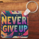 Denna nyckelkedja för Aluminiumkvadrat fungerar som en kraftfull påminnelse till behållan som går framåt, oavsett vilka utmaningar som finns. Den här nyckelkedjan är ett hållbart och snyggt tillbehör som inspirerar till motståndskraft och beslutsamhet varje dag. Den har den motiverande frasen "Aldrig Ge Up".