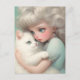 "Aldrig utan dig" Ett sött vykort från en kattälskare, som kuddar hennes vita hårig med mycket ömhet. Färg är pastel. Den här teckningen skildrar ett mycket vackert ögonblick av kärlek.