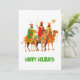 Alebrijes folkkonst Tre vise män fullständigt anpassningsbar julkort. Designen är en färgrik Alebrijes centralamerikansk folkkonst Tre vise män med röda, gyllene och gröna färger. Enkel anpassning av all text och baksidans bild, inklusive typsnitt och bakgrundsfärger när du anpassar med verktyget Redigera design.