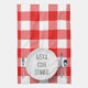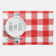 Alexa Elektroniska enhetskommando för matlagningsmiddag på vit middagsplatta och silvergods. Bakgrunden är röd och vit buffel pläterad