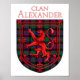 Alexander Scottish tartan plaid mönster-design för Alexander Klan Family under den röda Lejona Rampant Shield of Scotland.