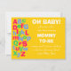 Inbjudan till ABC-tematiserad baby shower med dikt på baksidan för att starta ett bibliotek för bebis