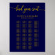 Alfabetiskt bröllopsplatsschema guld marinblå poster