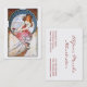 En charmig art nouveauvisitkort som presenterar musan av målning som målas av den tjeckiska målare och den dekorativa konstnären Alfons Maria Mucha.