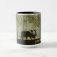 En illustration av en älg-/älgSilhouette med horn på kronhjort i den grafiska skogvektorn. I gröntar och grunge bryner. Jakt och jägare avbildar design. Djurlivlandskap. Ordna till för att personifieras med något namn eller tillfoga någon text.