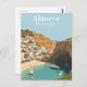 Fira den avslappnade charm som finns i södra Portugal med detta vintage-resekort från Algarve. Inspirerad av klassiska europeiska reseposter, fångar denna retroillustration de soldränkta stränderna, ikoniska klipporna och Medelhavsfärgerna som gör Algarve till en tidlös destination. En perfekt present eller souvenir för resesentusiaster och konstsamlare vid kusten.