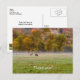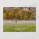 Tackkort med en älgko och en älgstut som betar på ett fält en kylig höstmorgon med kvarvarande dimma. Den stora älgstuten äter gräs medan älgkon tittar på. Detta är i Boxley Valley, Arkansas, USA.