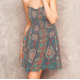 Symmetriskt upprepande av mönster med starkt moturkiskt inflytande. Dominant färg är djup teal, rött muterat och lätt beige/kräm, med accenter av lättare teal och mörkare rödaktig lila. Utformningen kännetecknas av: Ogee-like kurvor: Forming lodrät vågigt kolumner. Centrala medaljoner: Inom varje gejedel finns ett cirkulärt motiv som liknar en stiliserad blomma eller starst, inramad av ornat rullverk och punkter. Lodrät gräns: Raka, mönstrade remsor med mindre geometrisk utformning eller rulla skiljer de övre kolumnerna åt. Intrikera detaljuppgifter: Små punkter, snurrar och löv-liknande inslag fyller utrymmena i de viktigaste motiven. Strukturellt utseende: Det övergripande utseendet antyder en vävnad eller ett tryckt tyg med en lätt tryckt eller antik avsluta.