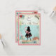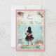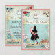 Eleganta, fantasifulla vintage Alice i Underlandet collage vigelitskort. På framsidan av dessa söta shabby chic färgglada blå och rosa inbjudningar en söt Alice silhuett som bär en söt fantasifull rosa flamingo, den grinande Cheshirekatten, en tekanna, en glamourös guldpocketklocka, hjärtformad sylt-tårta, och den vita kaninen med sin fickur. Bakgrunden är ett vackert färgglatt blått vintage-journalpapper med blå rosor och vita prästkragar och en gammal nyckel. Det finns en söt rosa kant med små hjärtan. På baksidan av dessa underbara, roliga inbjudningar är samma bakgrund med en söt "drick mig"-flaska, hjärtformad sylt-tårta, tekopp och fat. OBS: Alla produkter på Zazzle har platta tryckta bilder. All text är helt anpassningsbar för att möta dina behov och du kan ändra typsnitt, färg