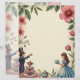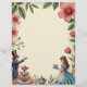 Försvinn in i en fantastisk teservering med detta förtjusande papper med Alice och den galne hattmakaren. Det visar Alice som håller i en tekopp och den galne hattmakaren som gestikulerar mot en flerskiktig tekoppsställning, inramad av en vacker kant med stora rosa blommor. Med oändliga kreativa möjligheter är detta papper perfekt för inbjudningar, scrapbooking, skrotjournaler och andra personliga projekt. Tryckt i hög kvalitet, fullfärg på tunt matt papper, är det designat för att ge en skarp, professionell look till dina personliga eller affärsmässiga brev. Lägg till personliga foton och text utan extra kostnad, vilket gör det till ett mångsidigt och minnesvärt tillägg till alla projekt.