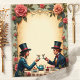 Arrangera en fantastisk tebjudning med detta förtjusande papper med en vintage scen från Alice i Underlandet. Den visar Alice och den galne hattmakaren som toastar tekoppar vid ett bord fullt med desserter, allt inramat av en vacker kant med rosa rosor. Med oändliga kreativa möjligheter är detta papper perfekt för inbjudningar, scrapbooking, skrotbokande och andra personliga projekt. Tryckt i hög kvalitet, fullfärg på tunt matt papper, är det designat för att ge en skarp, professionell look till din personliga eller affärsmailning. Lägg till personliga foton och text utan extra kostnad, vilket gör det till ett mångsidigt och minnesvärt tillägg till alla projekt.