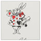 Ett tecken från sagaberättelsen, Alice i underland. Vitkaninen ha på sig en robe eller ett plagg med kostymen av kort av hjärtor och är hållande en trumpethorn. Hjärtorna är i rött och svart på vit. Behållan som är, eller skräddarsy.