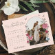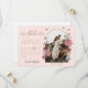 Bjud in din gäst till din mycket viktiga dejt med vår vackert designade vintage "Alice i Underlandet"-tema för din bröllopsinbjudan. Perfekt för ett "Alice i Underlandet"-tema bröllop. Vi har noggrant restaurerat den ikoniska "Alice i Underlandet" vintage-illustrationen av den vita kaninen & Alice genom att handteckna och ge den liv med vackra akvarelltoner. Funktionen inkluderar vår handritade akvarell- och skiss-stil ros-blomställning för att lägga till din egen bild i bågformade fotofram. Ändra kalendern till ditt bröllopsdatum. Baksidan visar vår original handritade vintage hjärtnyckel med våra vackra matchande blomsterarrangemang. Eleganta och vintage textstilspar förstärker detta magiska, fantasifulla och ikoniska "Alice i