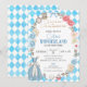 En drömlig Alice i Underlandet-tema födelseinvitation, prydd med vackra fantasielement.
