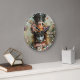 Väggurklocka för Tekanna hos galna hattens teparty | Vi är alla galna här drar citat från Alice i Underlandet. Denna illustrerade väggurklocka visar den galna hattmakaren i en stund av nyfiken lugn - hans höga hatt är fylld med spelkort, en sliten kavaj, vilt rött hår och ett vetande leende. Han håller en tekanna som om han var mitt i en tanke, balanserad mellan vett och vettlöshet. Mot en ljus bakgrund inspirerad av en tefest, anspelar designen på den surrealistiska och insiktsfulla världen i Underlandet.