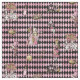 Bland Mönster finns Alice, drottning av hearter, kortsoldater, mad Hatter, vit kanin, cheshire cat, fickur, nyckel, krona, potion, tekruka och rosor på rosa och svart harlequin.