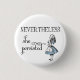 Alice, flickan från de klassiska barnens bok Alice i Underlandet, med armen korsade och bär sin ikoniska blå klänning, visas med orden "NEVERTHELESS, hon stod fast" på den här underbarare påstående-skapar litterära temaknappen.