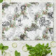 En älskvärda Alice i underlandcollage, med Alice, den Cheshire katten, vitkanin, den tokiga hatteren, vintageteakoppen, tekanna och rova, är fastställd på en bakgrund av vintage bild av järneken som är ordnade i diagonal linjer på vit.