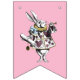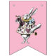 Alice i underlandkanin på rosa bakgrund med grattis på födelsedagentext. Du kan personifiera denna design, genom att ändra textfärgen på varje flagga.