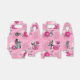 Mönster omfattar Alice, drottning av hearter, vit kanin, mad Hatter, cheshire Cat och potion på rosa stripe bakgrund.
