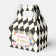 Alice i Wonderland favbox (portabel box), med svart och vit bakgrund. Mad tea party favors box. Ordningen kan anpassas till vilken födelsedag som helst. Matcha med andra Alice i Wonderland födelsedagsfest-artiklar från "Alice in Wonderland Birthday"-samlingen.
