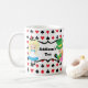 Cute Alice i Underlandstemat mugg med en coola kort mönster i rött och svart. Flickan Alice i sin blå klänning och Mad Hatter sitter ovanpå klubbarna, hjärtan, spader och diamantsymboler. Anpassa med egen text för en underbar bokmask eller biblioteksgåva. Sitt här medan du läser dina favoritbarns bok.