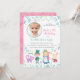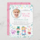 Söt Alice i Wonderland Födelsedagsfest inbjudan med för din favoritflickas födelsedag. Alice med en flamingo, mad Hatter, malning av Cheshire Cat och den vita kaninen. Ladda upp ditt favoritfoto och din dotter är Wonderlands stjärna! Söt och söt för en födelsedagsfest - kom inte för sent!