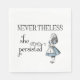 Alice flickan från de klassiska barnens bok Alice i underlandet, med armen korsad och med sin ikoniska blå klänning, visas med orden "NEVERTHELESS she persisted" på det underbara påstående-skapar litterära temat pappra blöjor för matlagning och party.