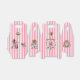 Mönster omfattar Alice, drottning av hearter, vit kanin, kortsoldater, tekruka, krona, klocka och ro på pastellbakgrunden och vit, rand rosa.