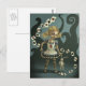 Whimsical Fantasy Alice i Wonderland. Mörk sagor. En liten flicka i en Alice-kostym som håller en kniv vid örat.