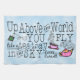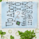 Citatet på den här söten, vismisk kökshandduk för den levande läsaren kommer från en Lewis Carroll dikt i hans bok, "Alice i underlandet". Mad Hatter tar upp det på te party: Över hela världen flyger du, som en tebricka i himlar. Typografin i finare har en tekopp, en tekanna/en tepåse, komplett med snurrande ånga - alla flytande på en ljusblå grumlig himlar-bakgrund.